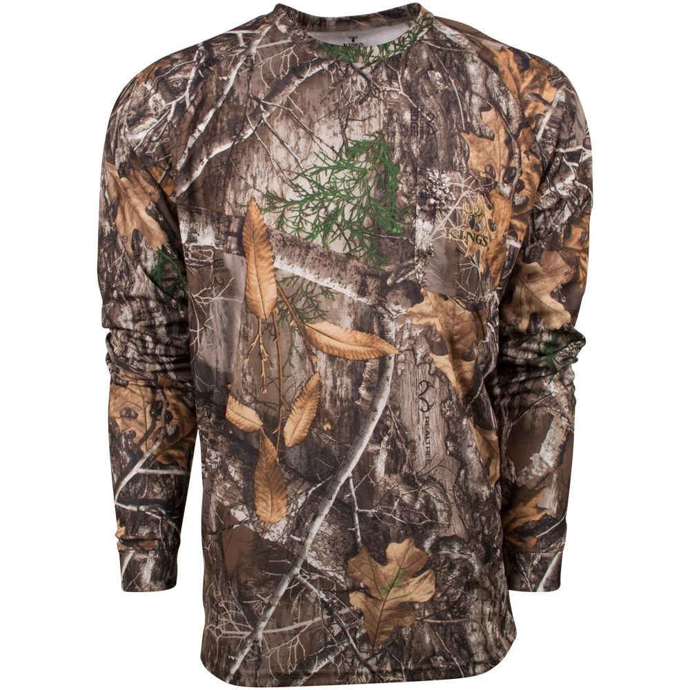 The Hunter Series Long Sleeve Shirt is built for full concealment and protection from sun or cold. A quick-dry, 100% polyester birds-eye mesh fabric enhances its natural wicking properties keeping you dry and comfortable. Includes a large pocket on the left chest. Perfect for early season archery or a base layer shirt.