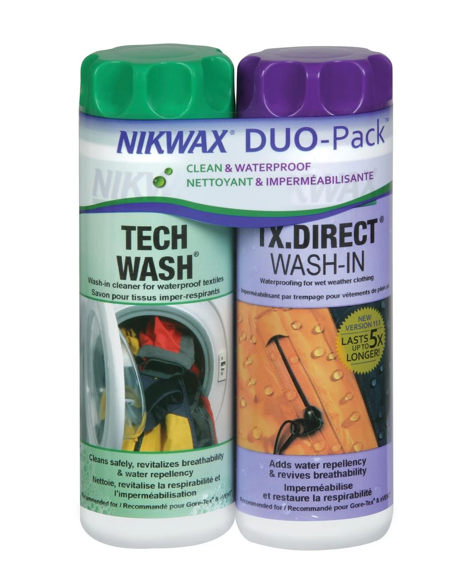 The NIXWAX Hardshell DuoPack is all that you need to safely clean and add water repellency to wet weather clothing without wickening liners. Clean and waterproof with the best water proofing in the industry with this convenient DuoPack.